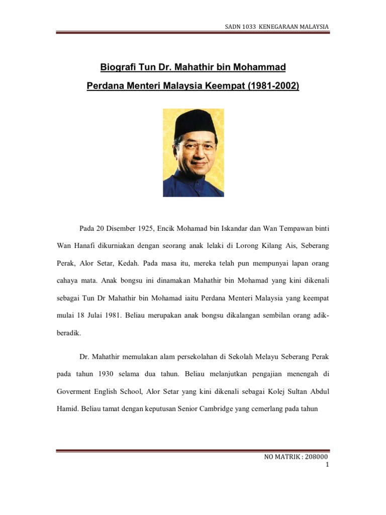 Biodata Ringkas Tun Dr Mahathir Pdf